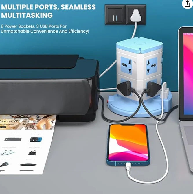 PowerX: Extension Board with 8 Outlets & 3 USB Ports, Surge-Protected Multi-port Power Strip for Home Electronics