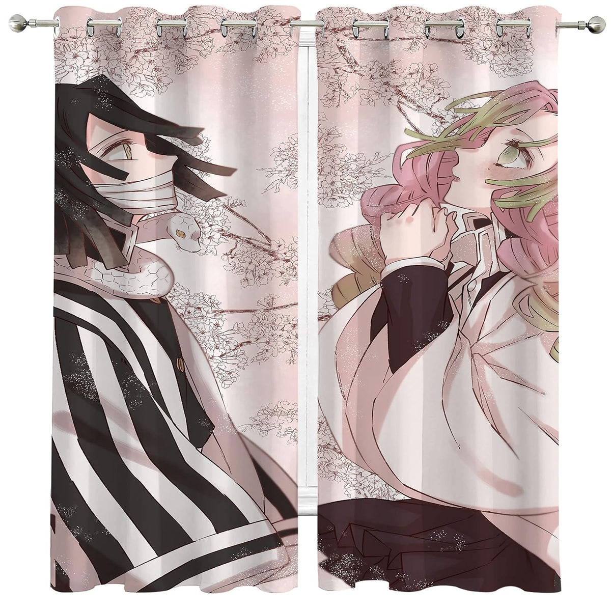 Anime Blackout Window Curtain,Exclusive Home Curtains Mitsuri and Muichirou Thermal Insulated Darkening for Living Room Bedroom Children's Room Decor,42x63Inch